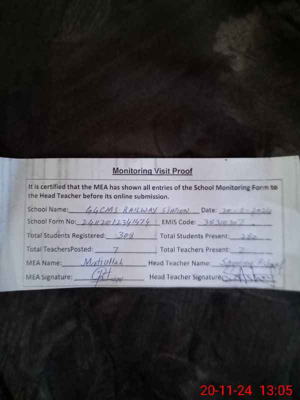| EMIS Code: 38310307 | Name of School: GGCMS RAILWAY STATION KALA BAGH | |||