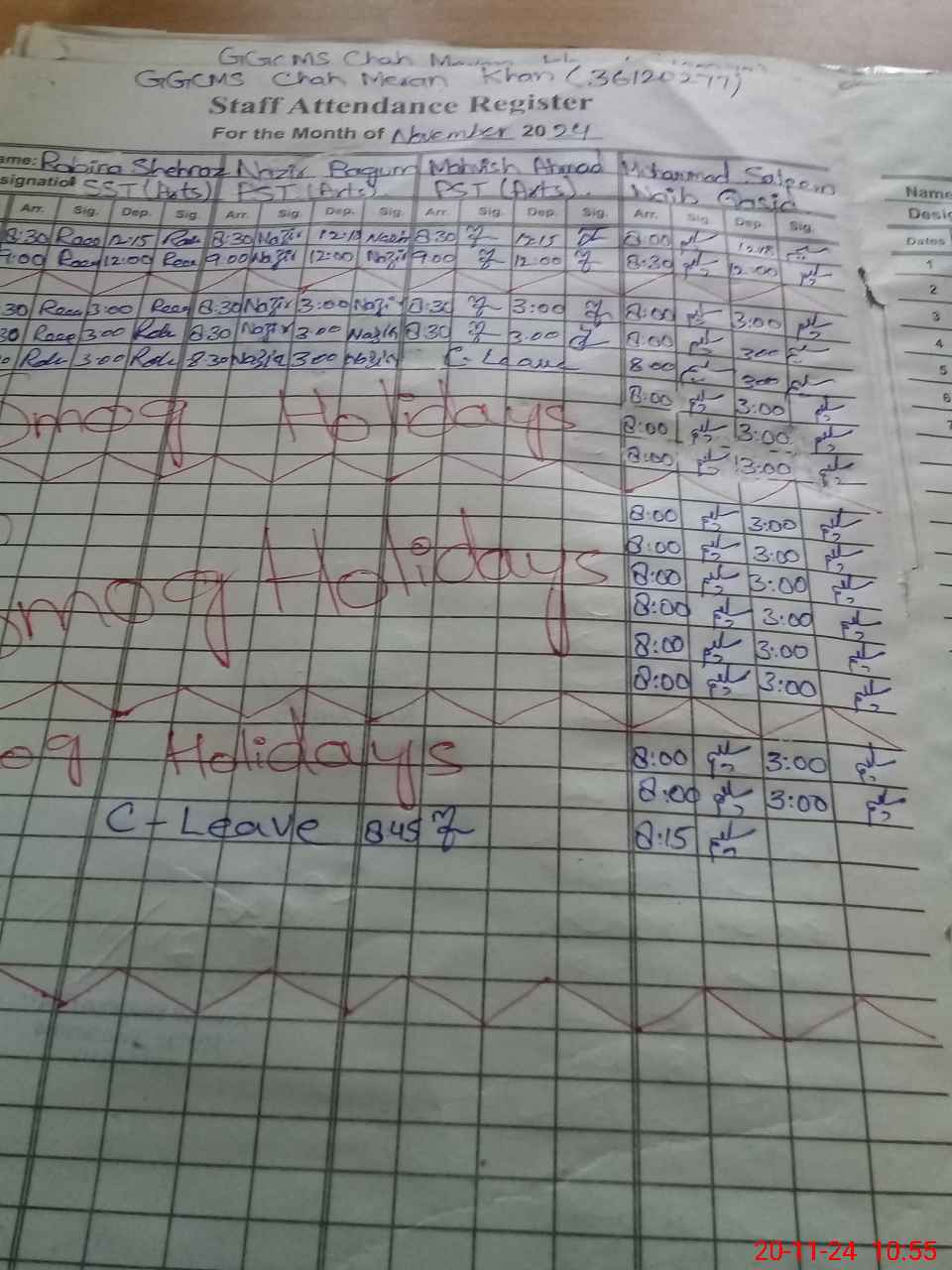 | CNIC | Full Name | Designation | R/C | Absence During Last Calender Month |