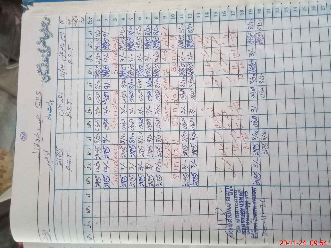 | Monitoring Date: 20-11-2024 | Start Time: 20-11-2024 09:26 AM | End Time: 20-11-2024 09:58 AM | Name of MEA: AK**** NA**** (R**** | |