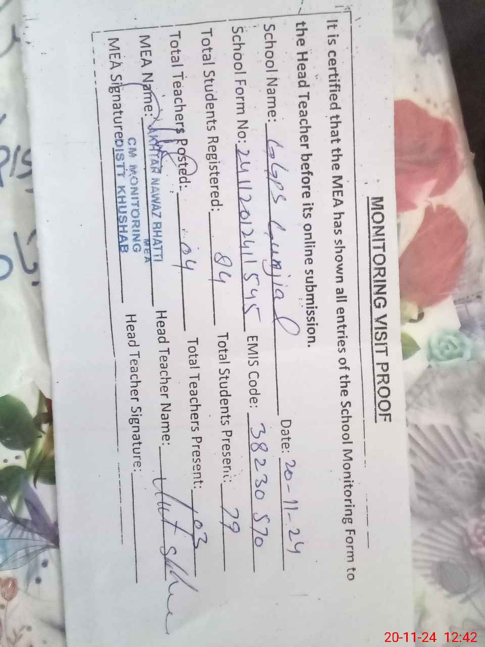 | EMIS Code: 38230570 | Name of School: GGPS GUNJIAL | |||