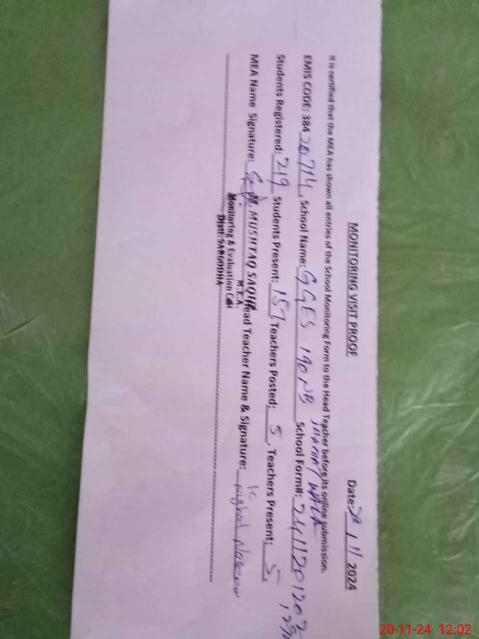 | EMIS Code: 38420714 | Name of School: GGES CHAK NO.190 NB JHAMAT WALA | |||