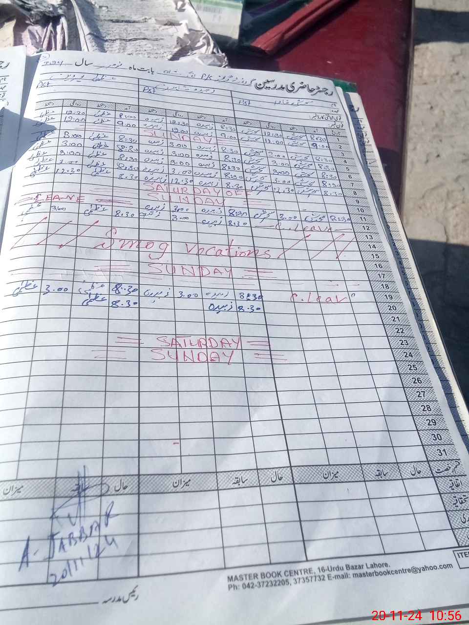 | CNIC | Full Name | Designation | R/C | Absence During Last Calender Month |