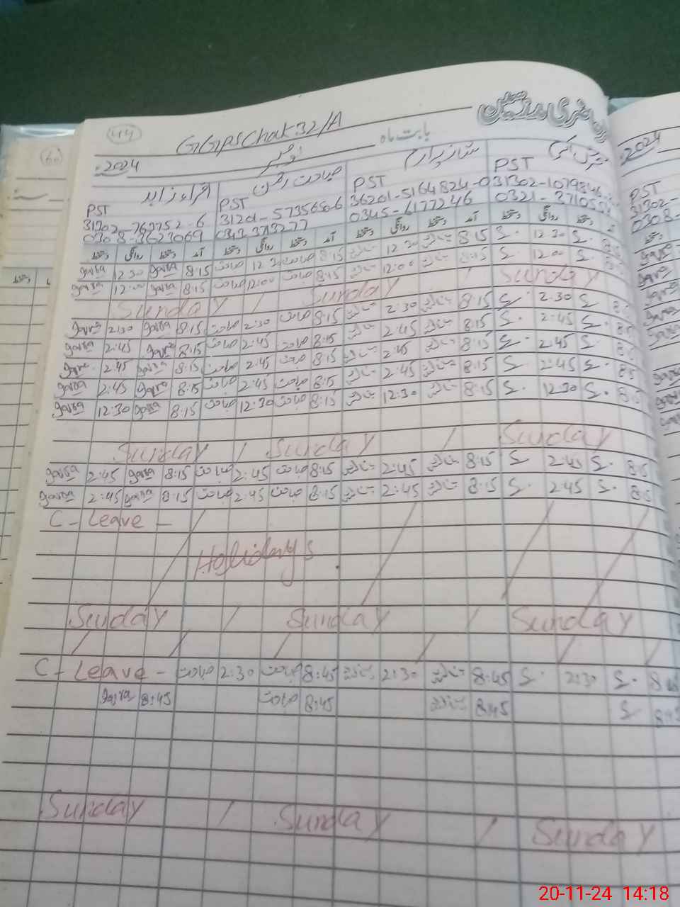 | CNIC | Full Name | Designation | R/C | Absence During Last Calender Month |