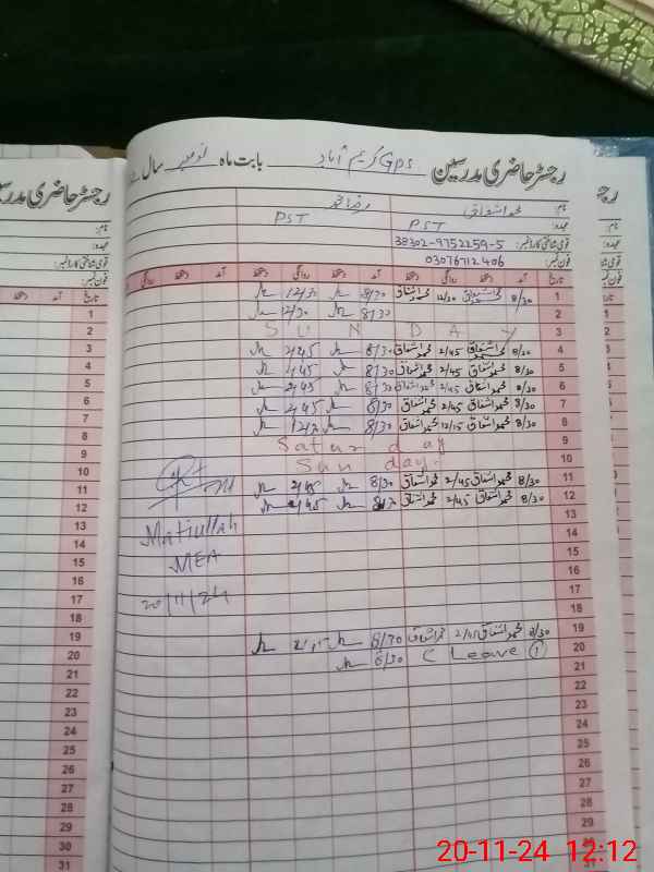 | Name: Za**** Iq**** Designation: (School Headmaster's/Headmistress's) PST/ Phone/Cell Number: 03**** |