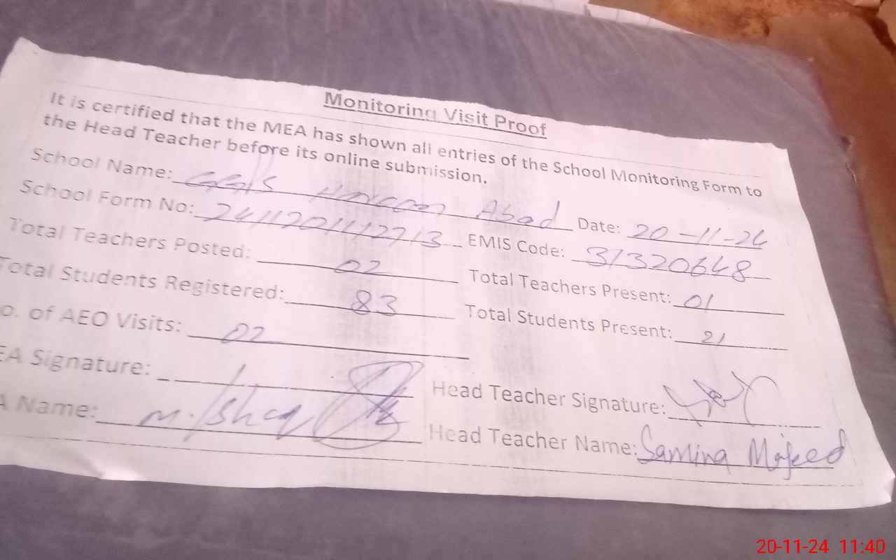 | EMIS Code: 31320648 | Name of School: GGPS HAROON ABAD | |||