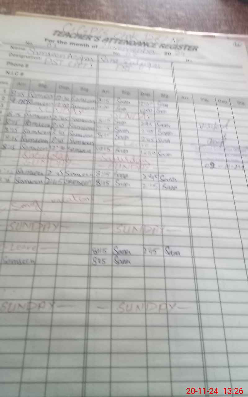 | Name: SA**** AS**** Designation: (School Headmaster's/Headmistress's) PST Phone/Cell Number: 03**** |