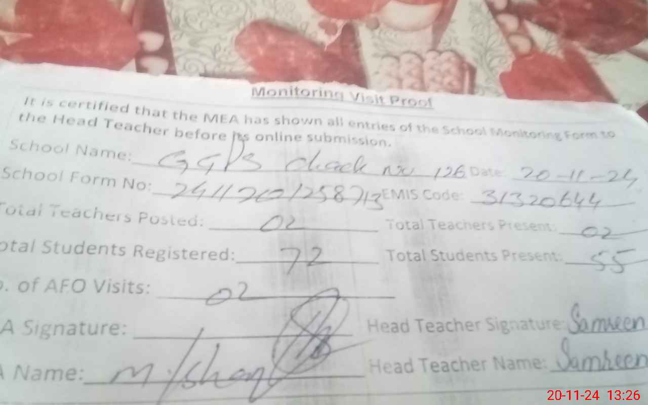 | EMIS Code: 31320644 | Name of School: GGPS CHAK 126/NP | |||