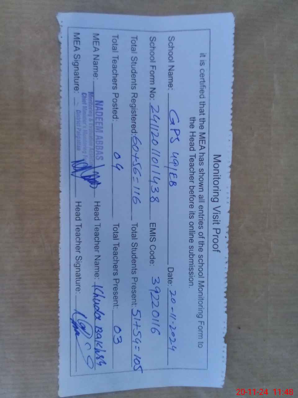 | EMIS Code: 39220116 | Name of School: GPS 49 EB | |||