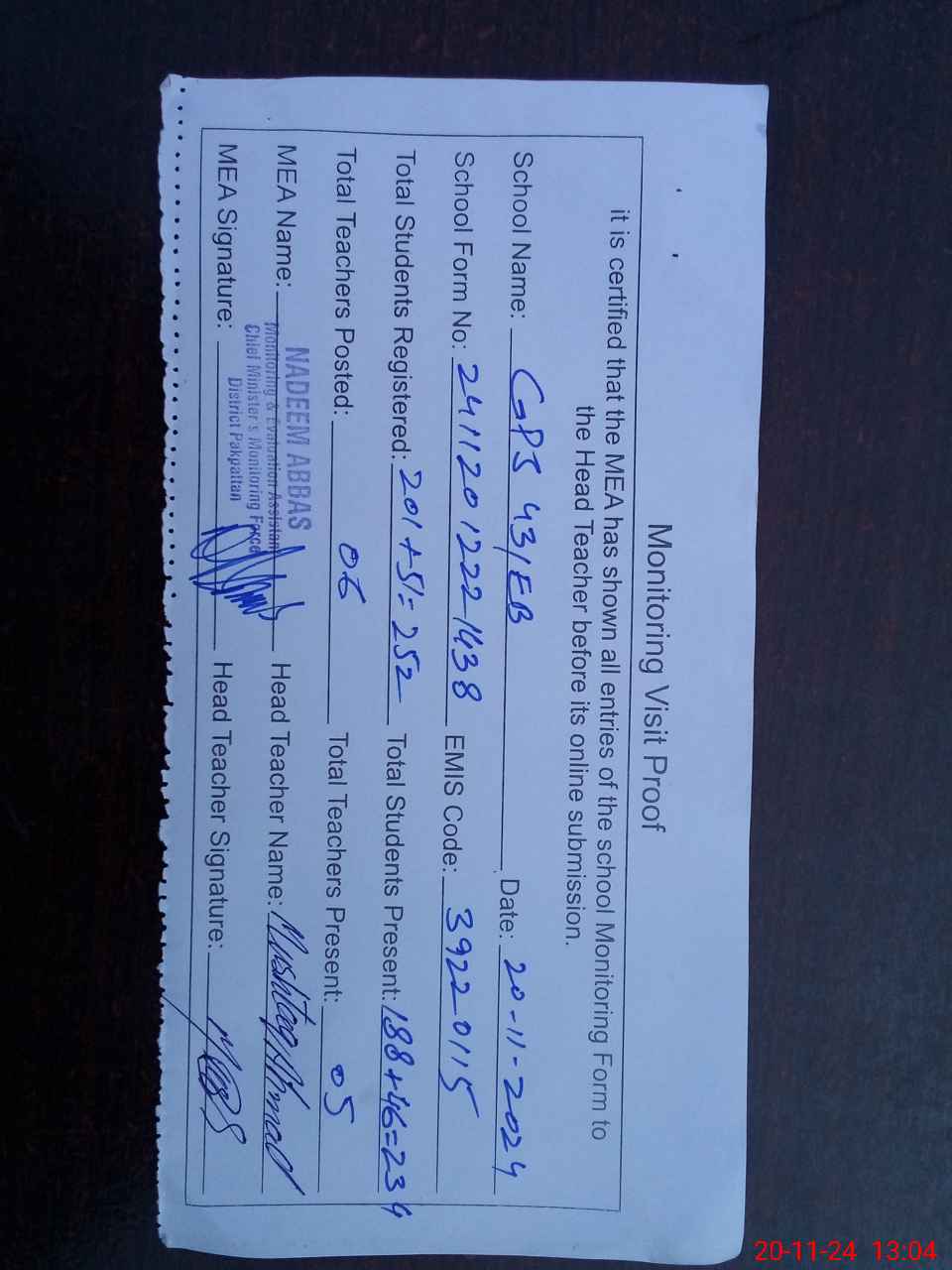| EMIS Code: 39220115 | Name of School: GES 43 EB | |||