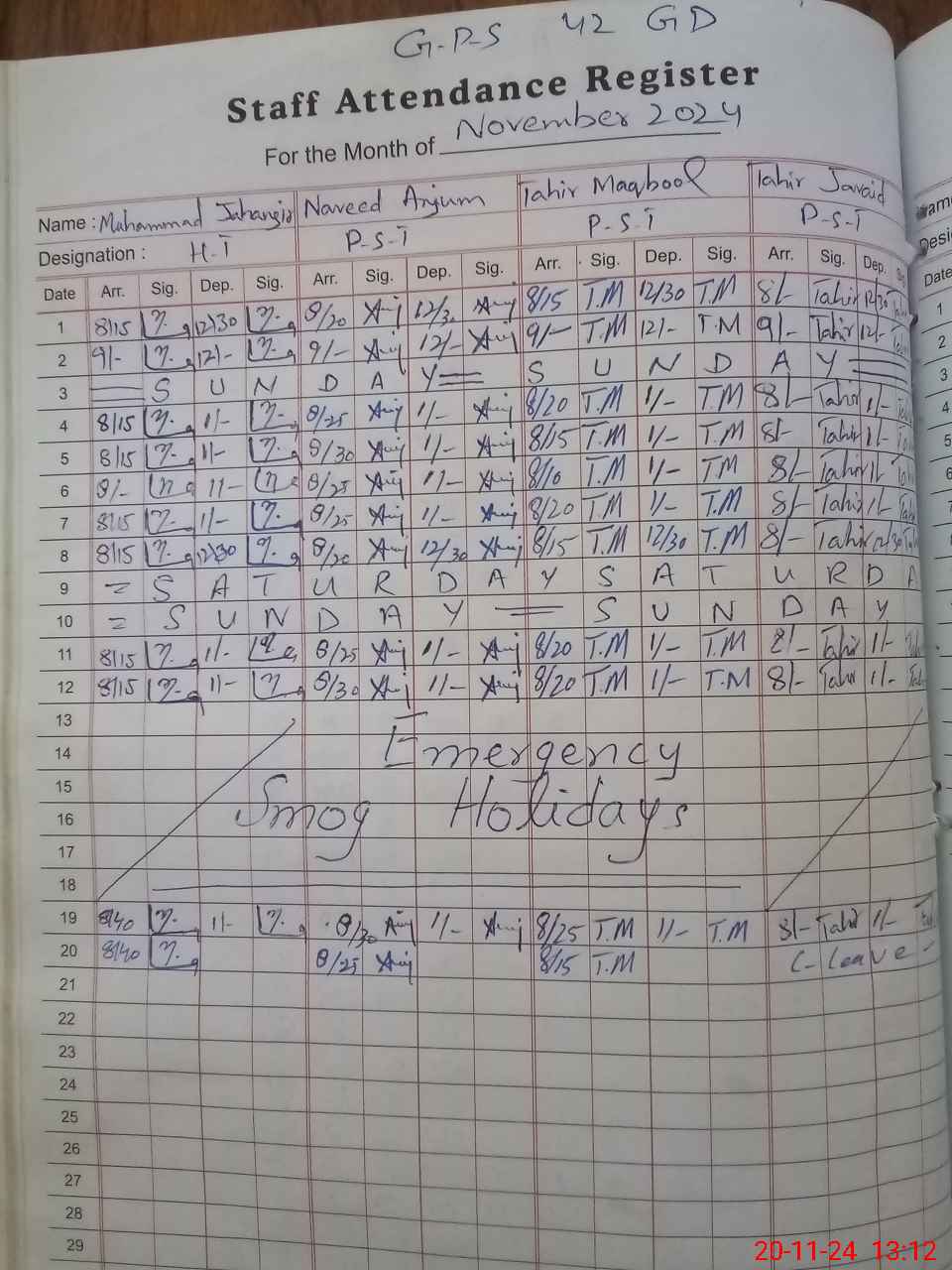 | CNIC | Full Name | Designation | R/C | Absence During Last Calender Month |