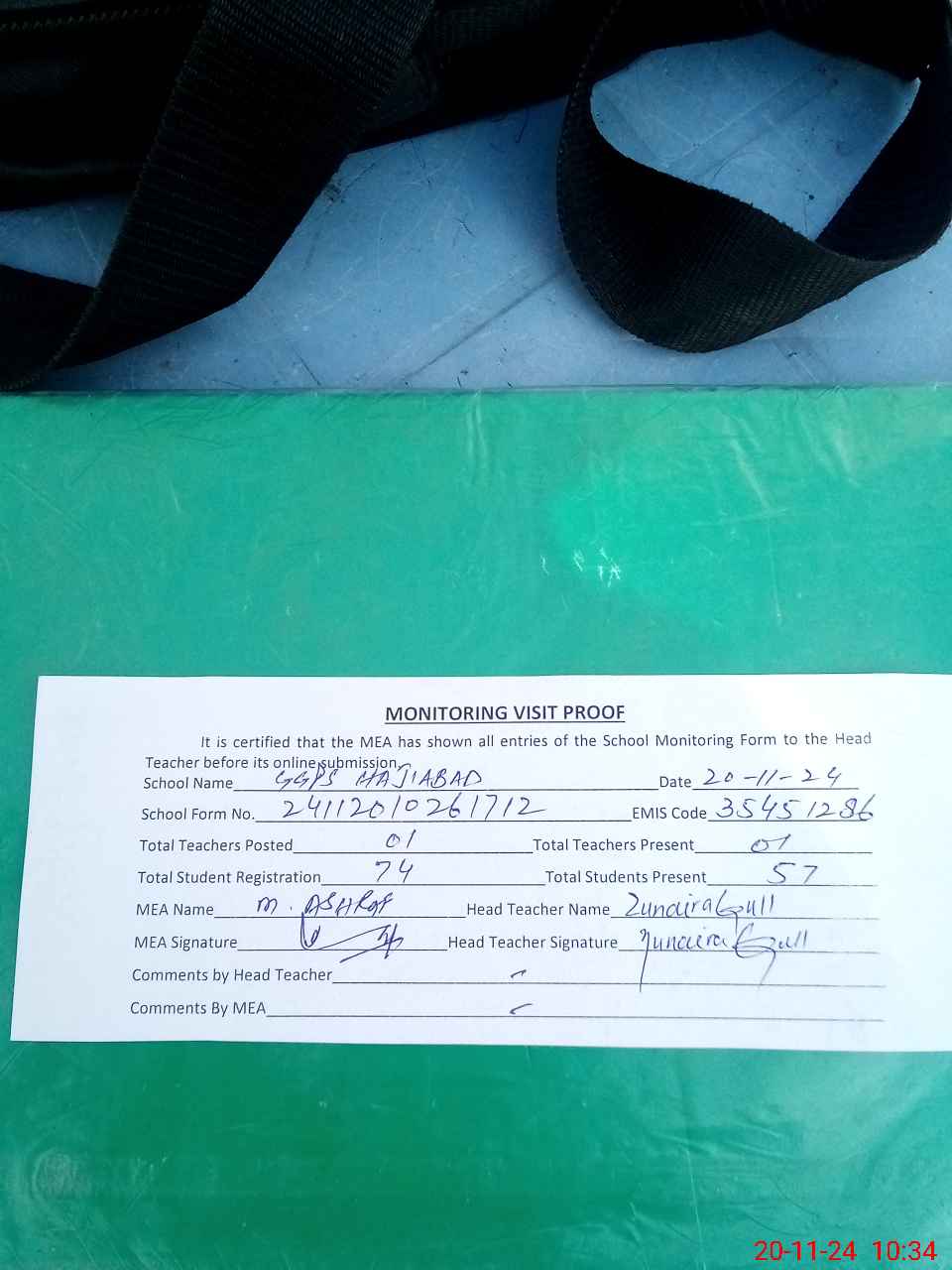 | Attendance Register | Head Teacher | MEA with School | Visit Proof |