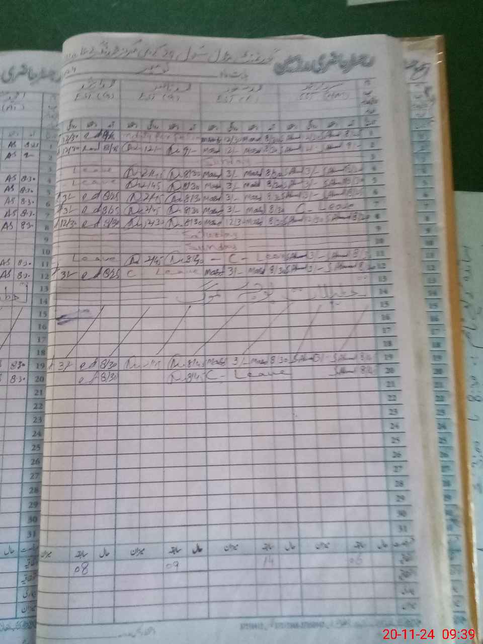 | CNIC | Full Name | Designation | R/C | Absence During Last Calender Month |
