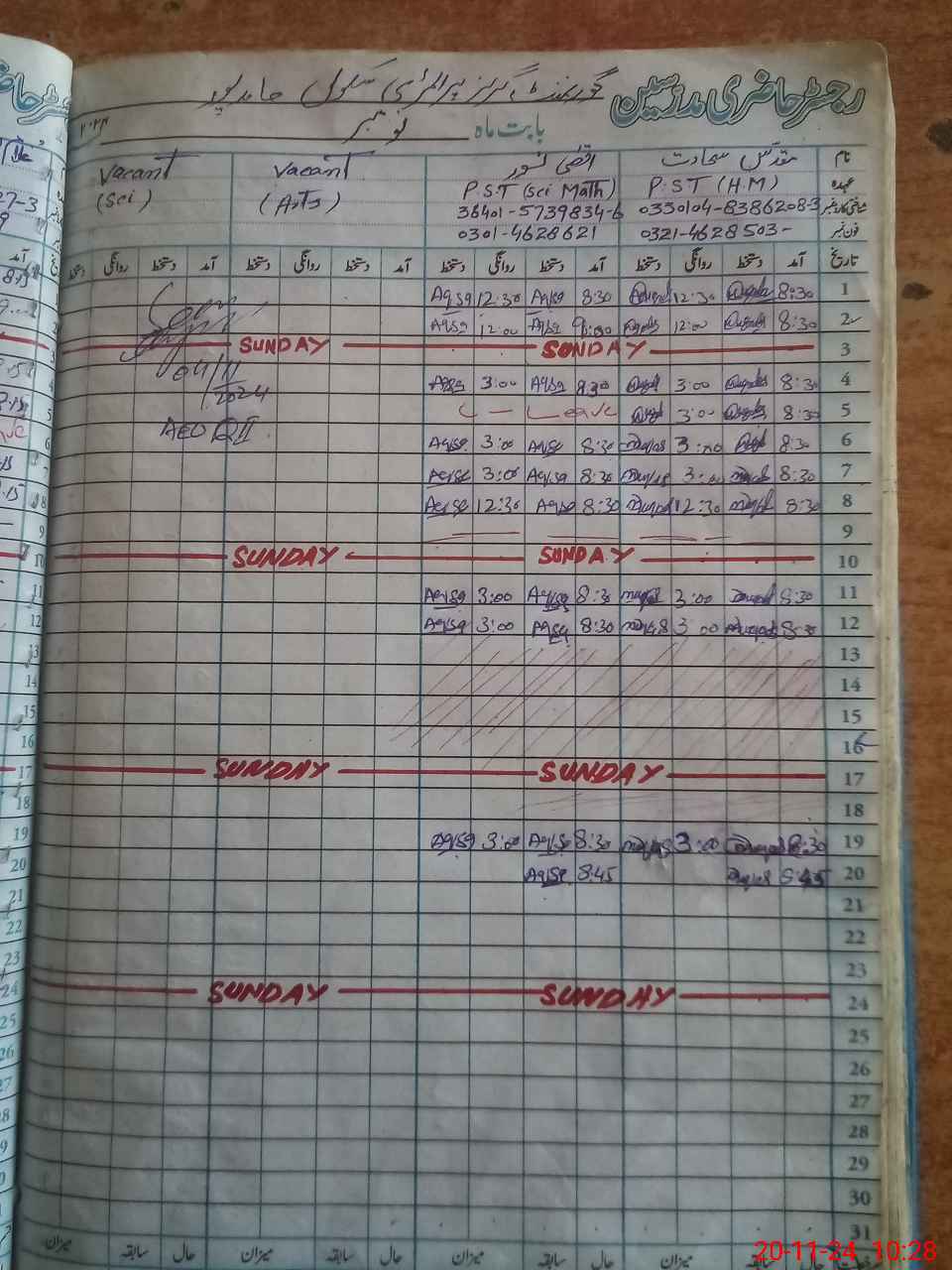 | Name: MU**** SA**** Designation: (School Headmaster's/Headmistress's) PST Phone/Cell Number: 03**** |