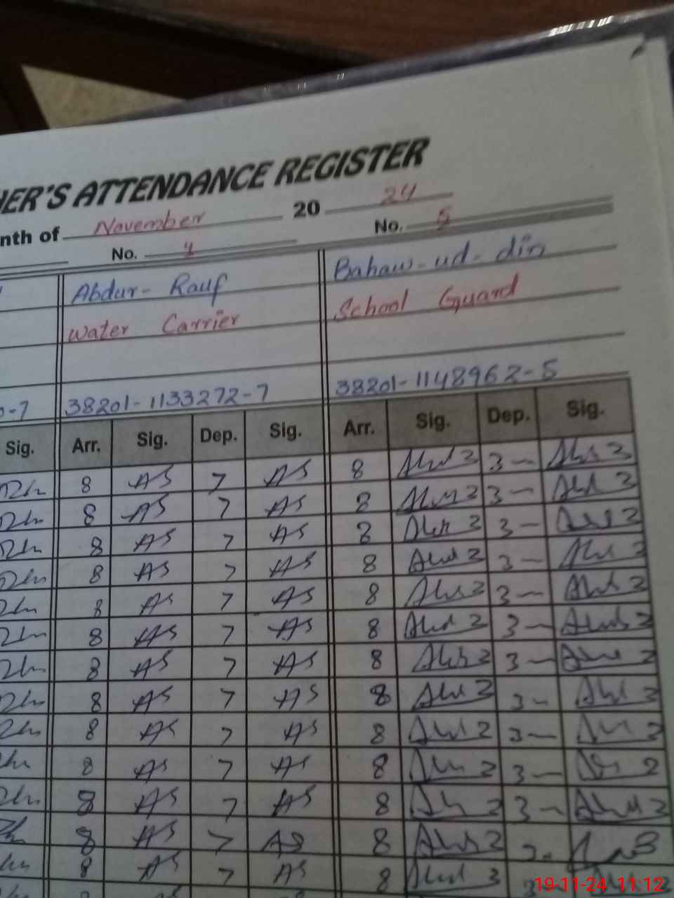 | CNIC | Full Name | Designation | R/C | Absence during last cal. month |