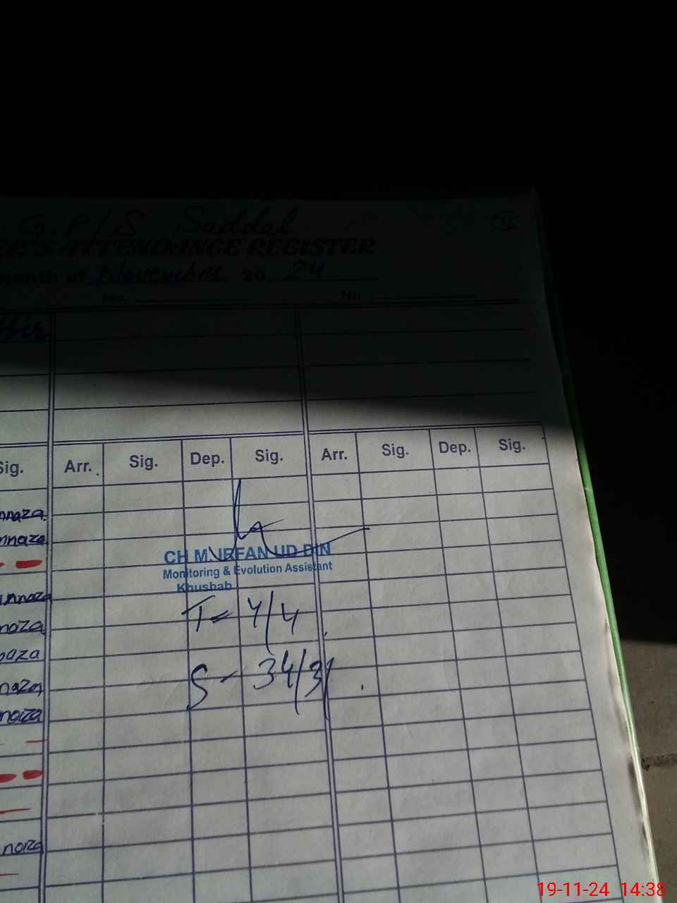 | EMIS Code: 38240702 | Name of School: GGPS MOHALLA SADDAL | |||