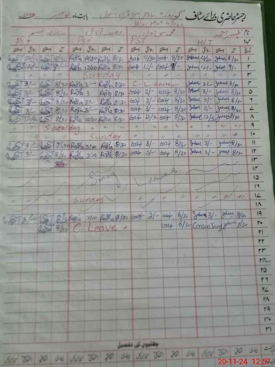 | CNIC | Full Name | Designation | R/C | Absence During Last Calender Month |