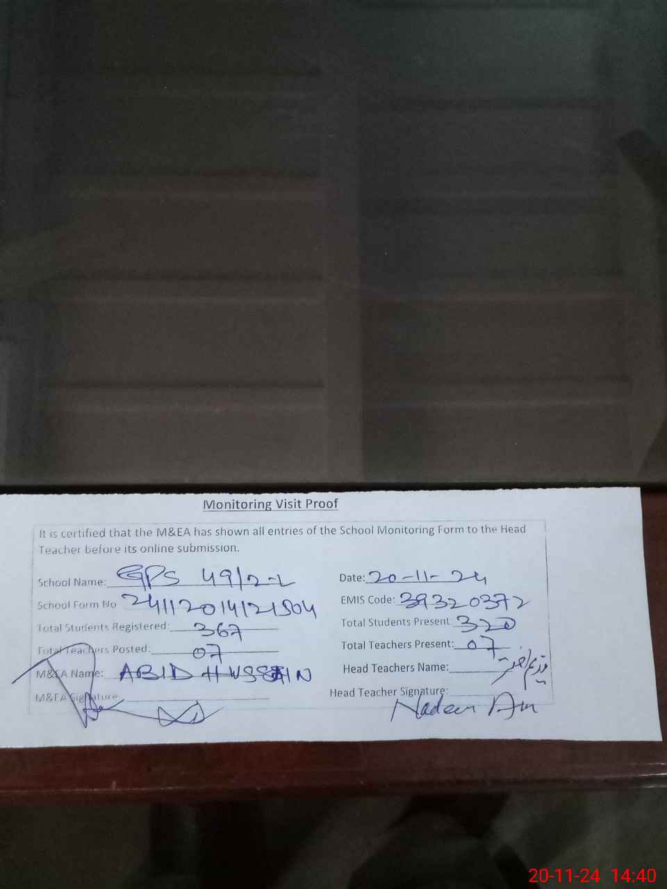 | Certified that this School was Inspected by the Undersigned MEA/DMO Today and the Information Stated Above is as Per Record. | |||||