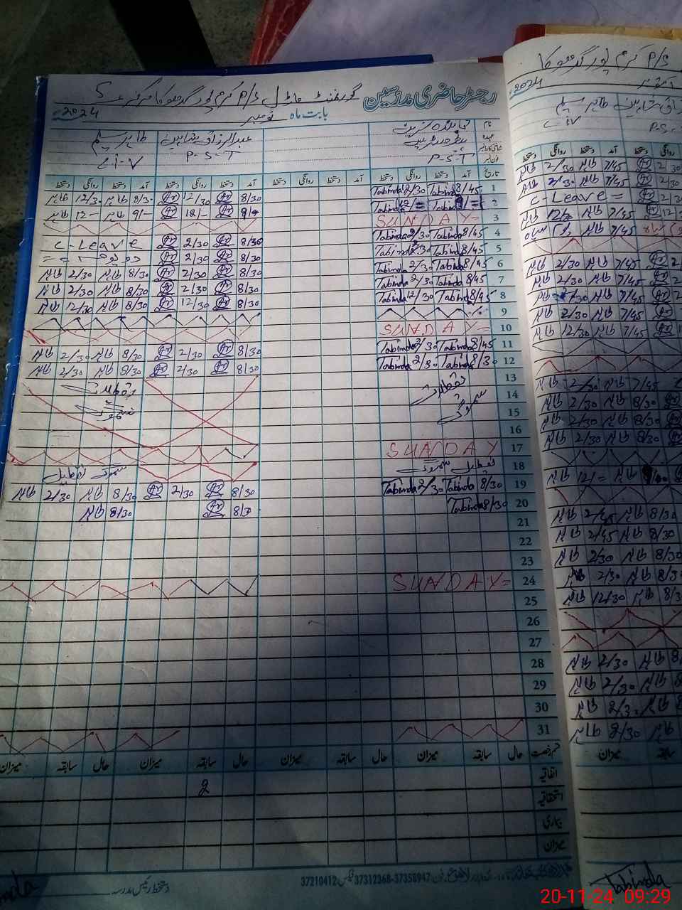 | CNIC | Full Name | Designation | R/C | Absence During Last Calender Month |