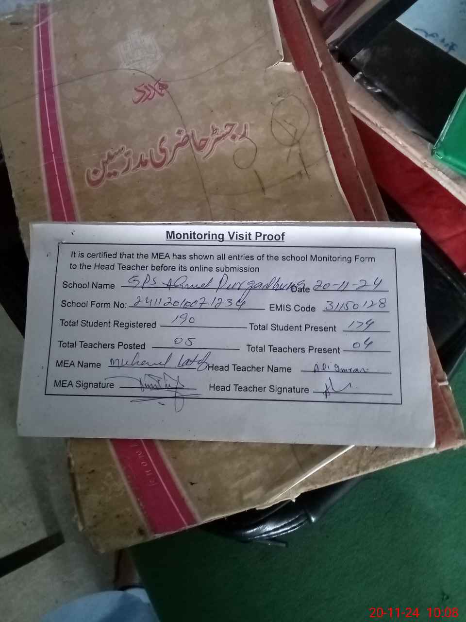 | EMIS Code: 31150128 | Name of School: GPS AHMAD PUR GADHUKA | |||