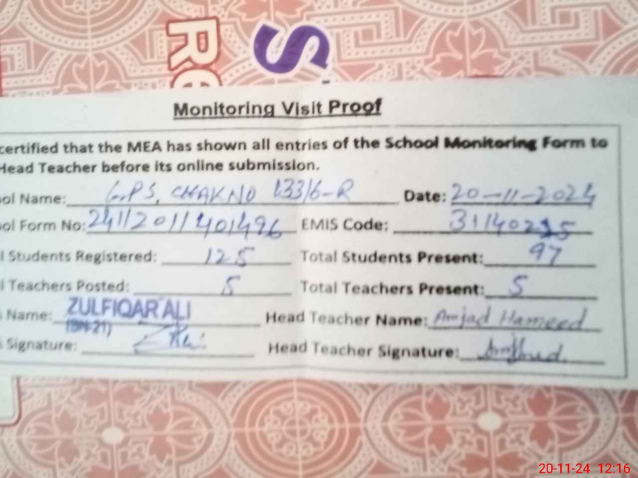 | EMIS Code: 31140215 | Name of School: GPS CHAK 133/6-R | |||