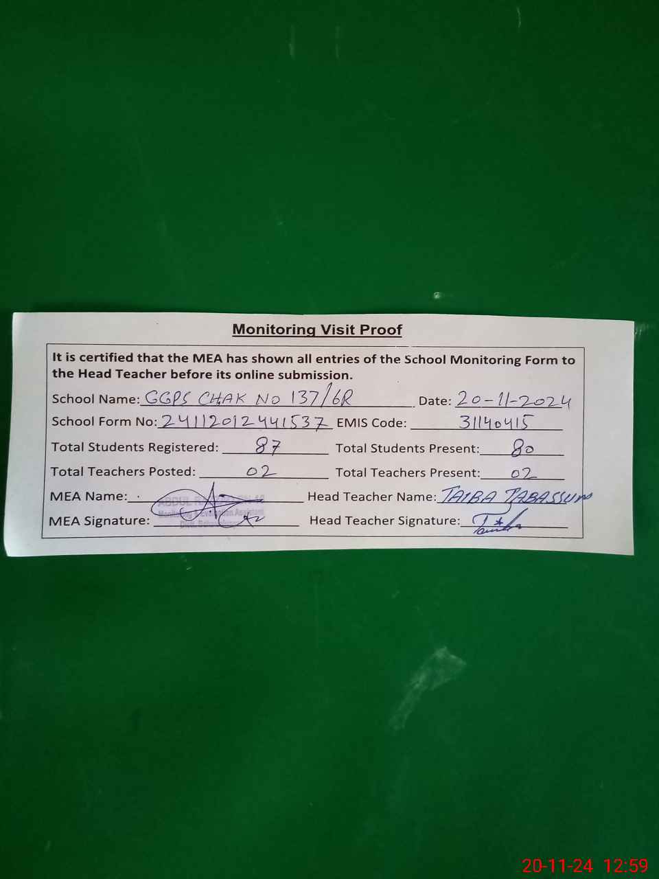| EMIS Code: 31140415 | Name of School: GGPS CHAK NO. 137/6-R | |||