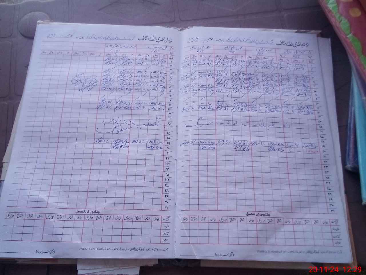 | CNIC | Full Name | Designation | R/C | Absence During Last Calender Month |