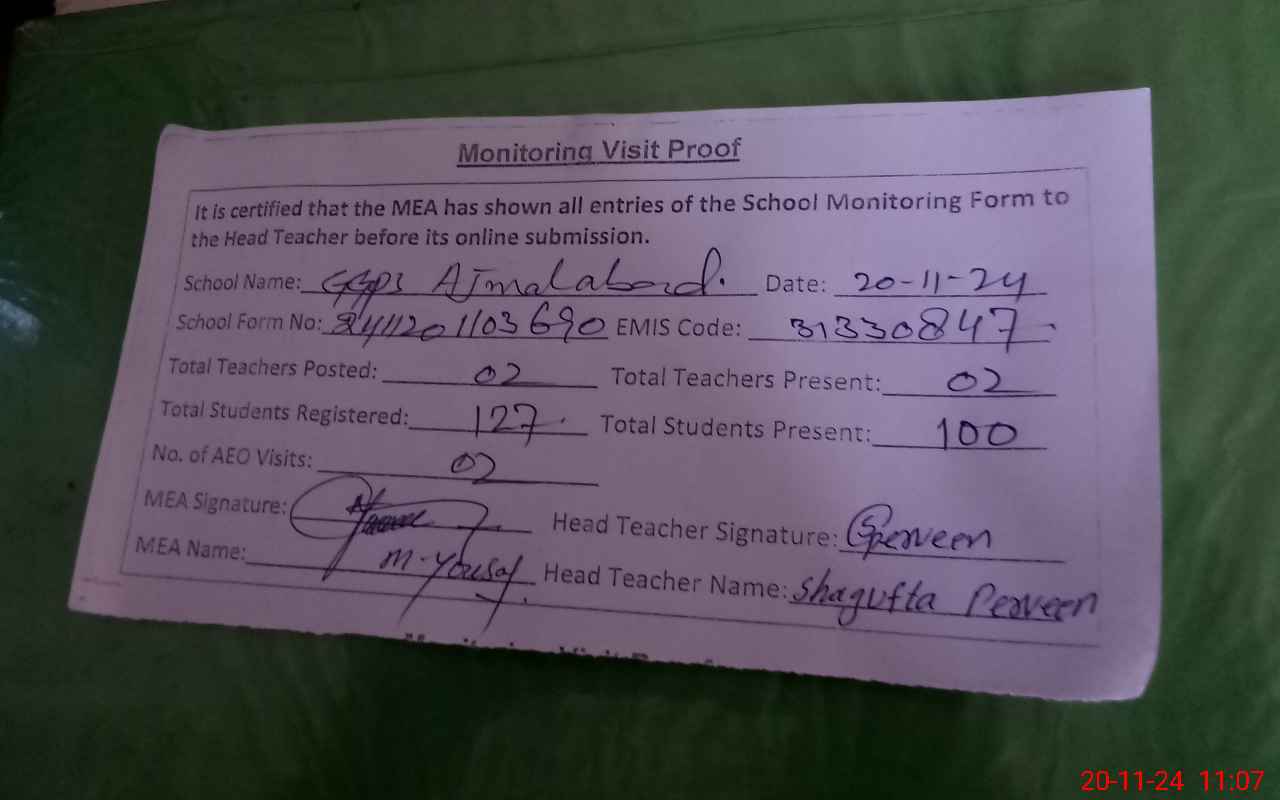| EMIS Code: 31330847 | Name of School: GGPS AJMAL ABAD | |||