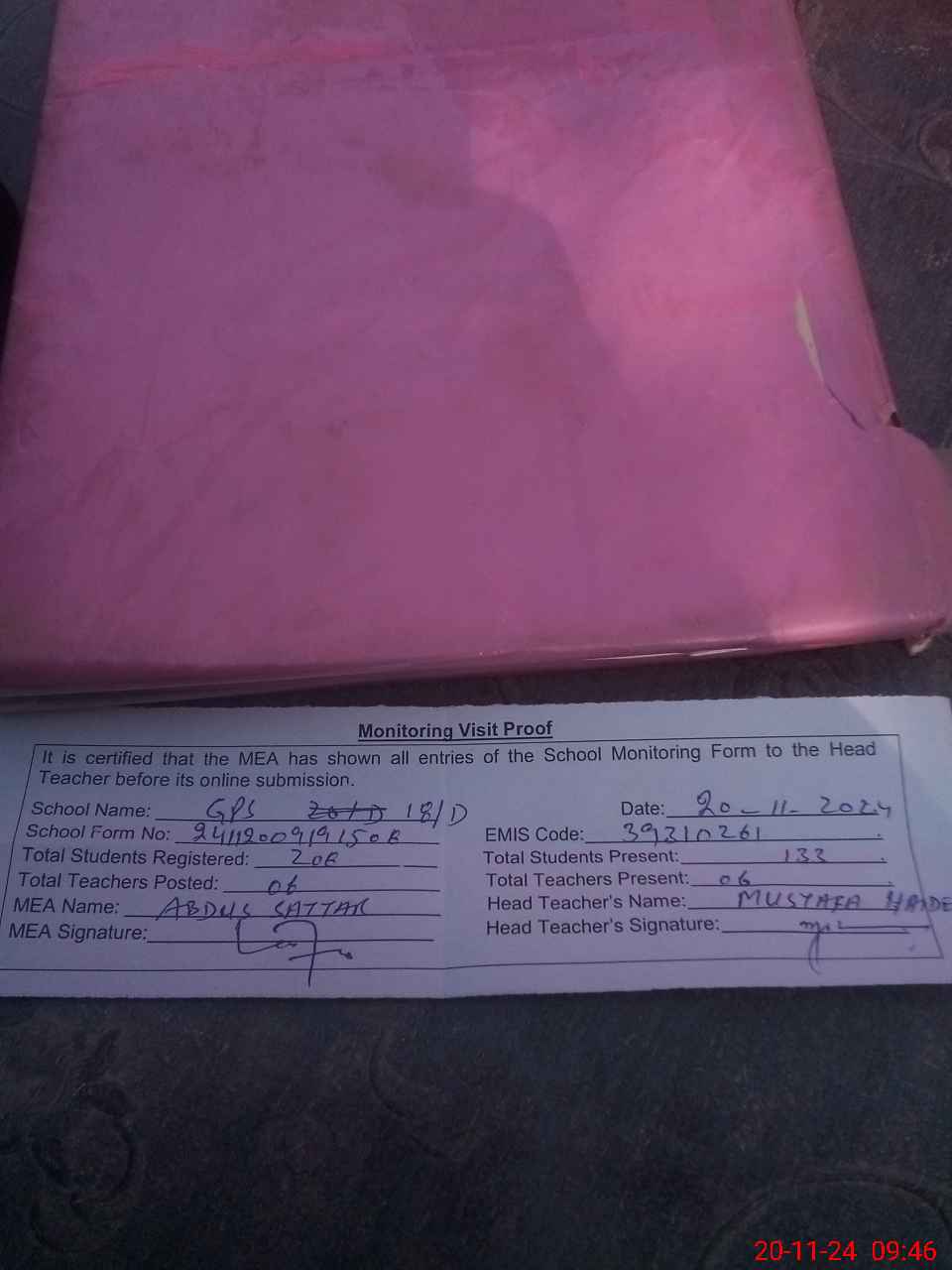 | EMIS Code: 39310261 | Name of School: GPS CHAK NO.18-D | |||