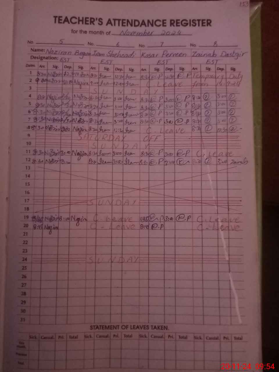| 31**** | Pa**** Ko**** | PST | Regular | 24 | 0 | 0 | 0 | 0 | 0 | 0 | 22 | 2 | Casual |