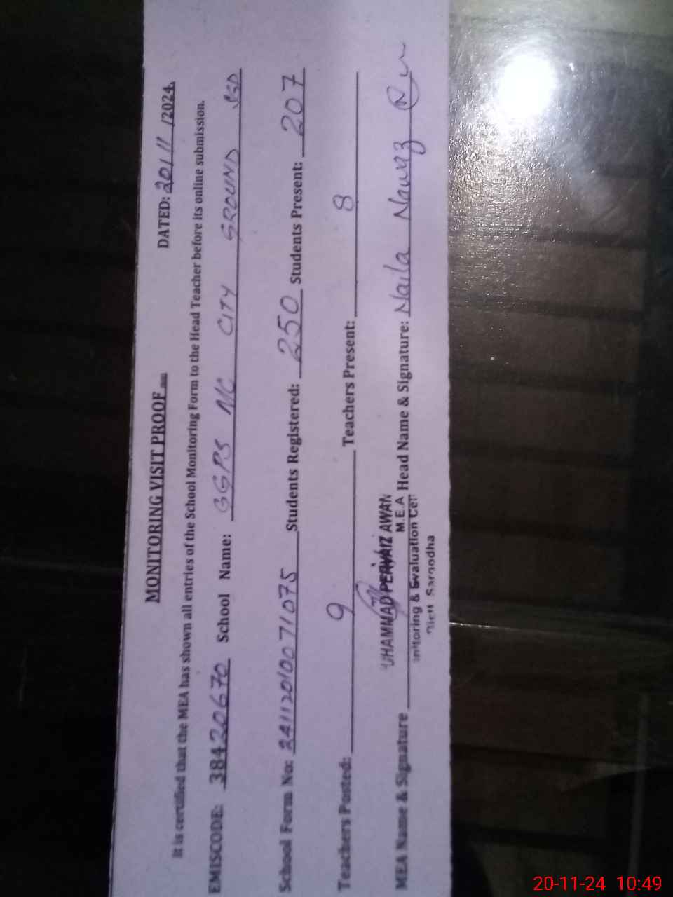 | EMIS Code: 38420670 | Name of School: GGPS MC CITY GROUND SARGODHA | |||