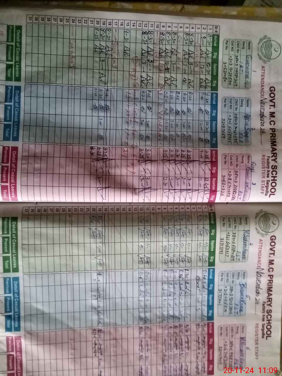 | CNIC | Full Name | Designation | R/C | Absence during last cal. month |