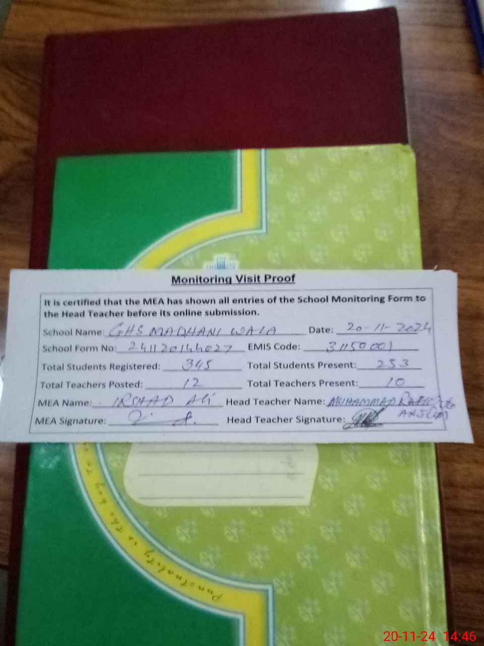 | EMIS Code: 31150001 | Name of School: GHS MADHANI WALA MINCHIN ABAD | |||