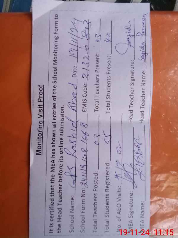 | EMIS Code: 31320803 | Name of School: GPS RASHID ABAD | |||