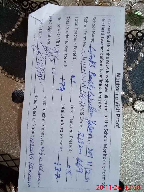 | EMIS Code: 31320669 | Name of School: GGPS BASTI GHULAM YASEEN | |||
