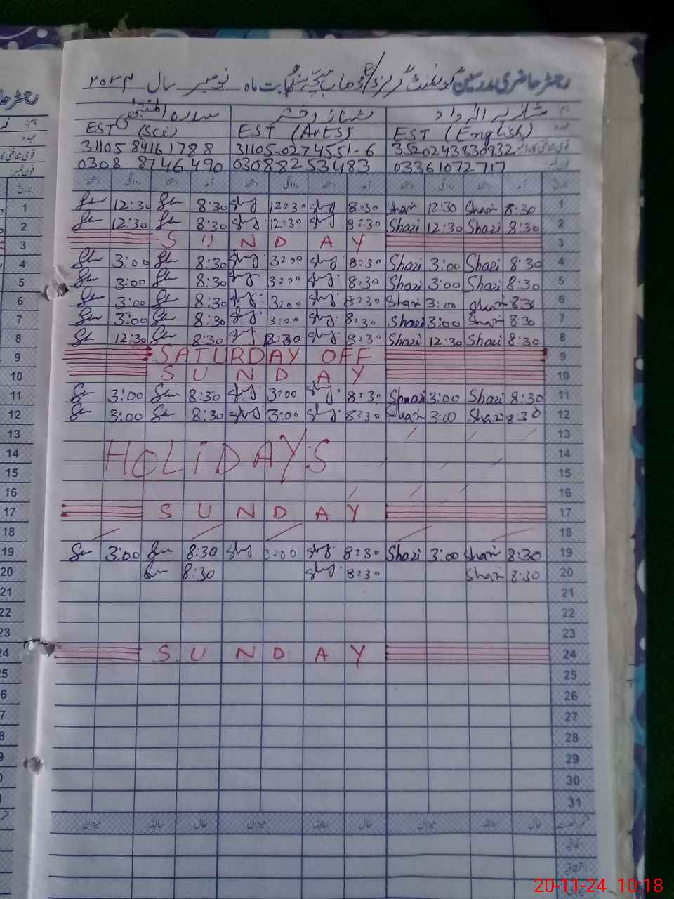 | Name: Sh**** Al**** Da**** Designation: (School Headmaster's/Headmistress's) EST Phone/Cell Number: 03**** |