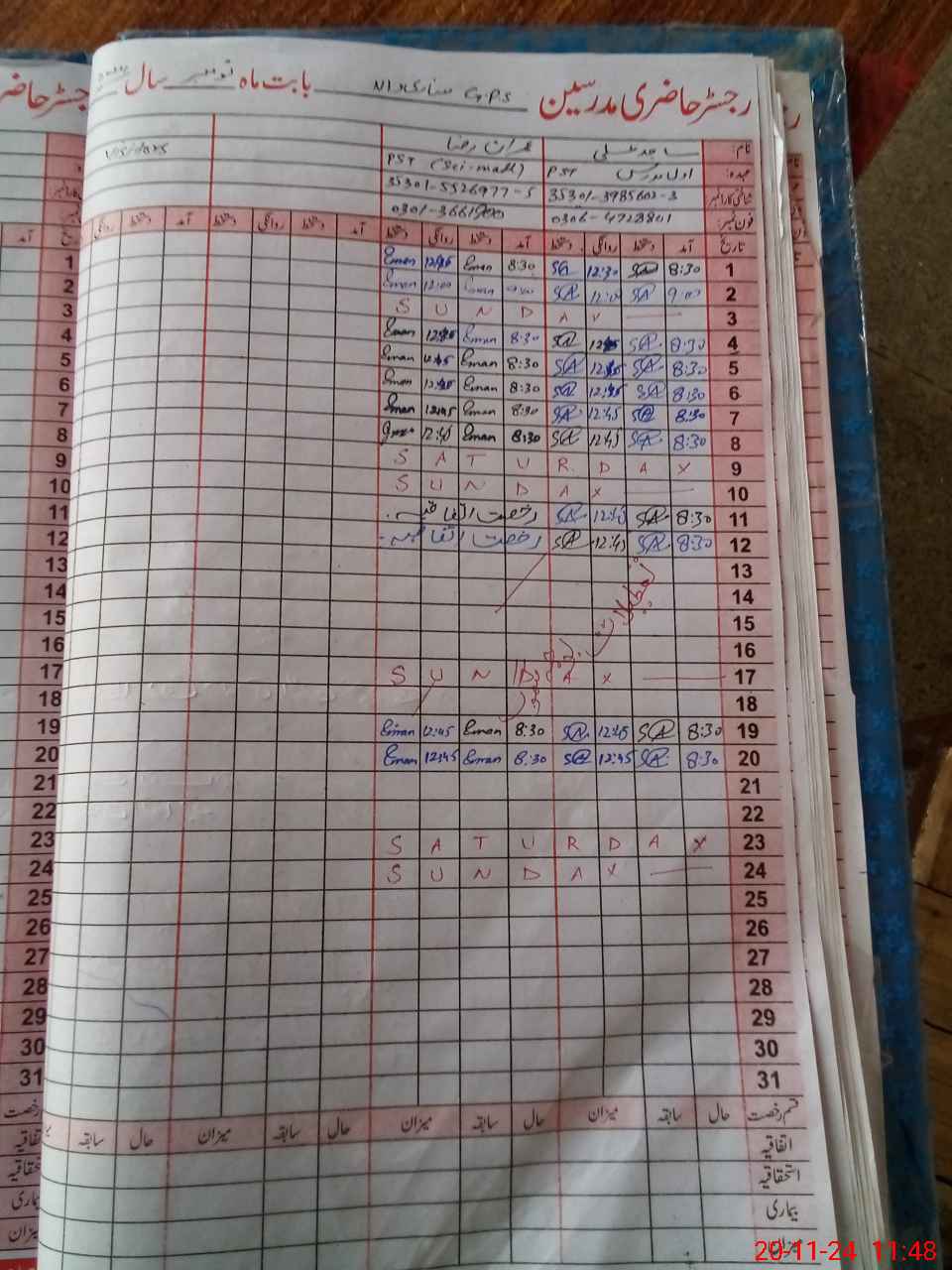 | Name: Sa**** Al**** Designation: (School Headmaster's/Headmistress's) PST Phone/Cell Number: 03**** |