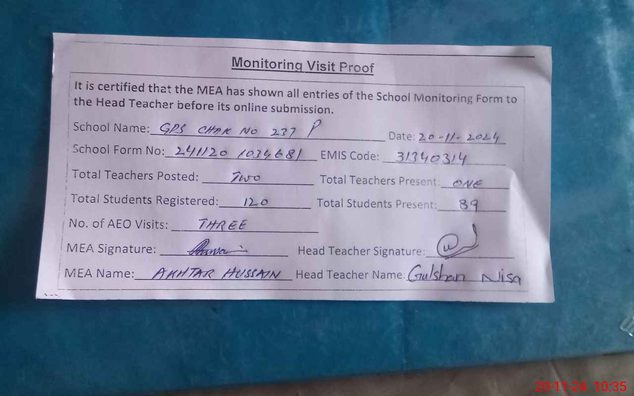 | EMIS Code: 31340314 | Name of School: GPS CHAK NO 237-P | |||
