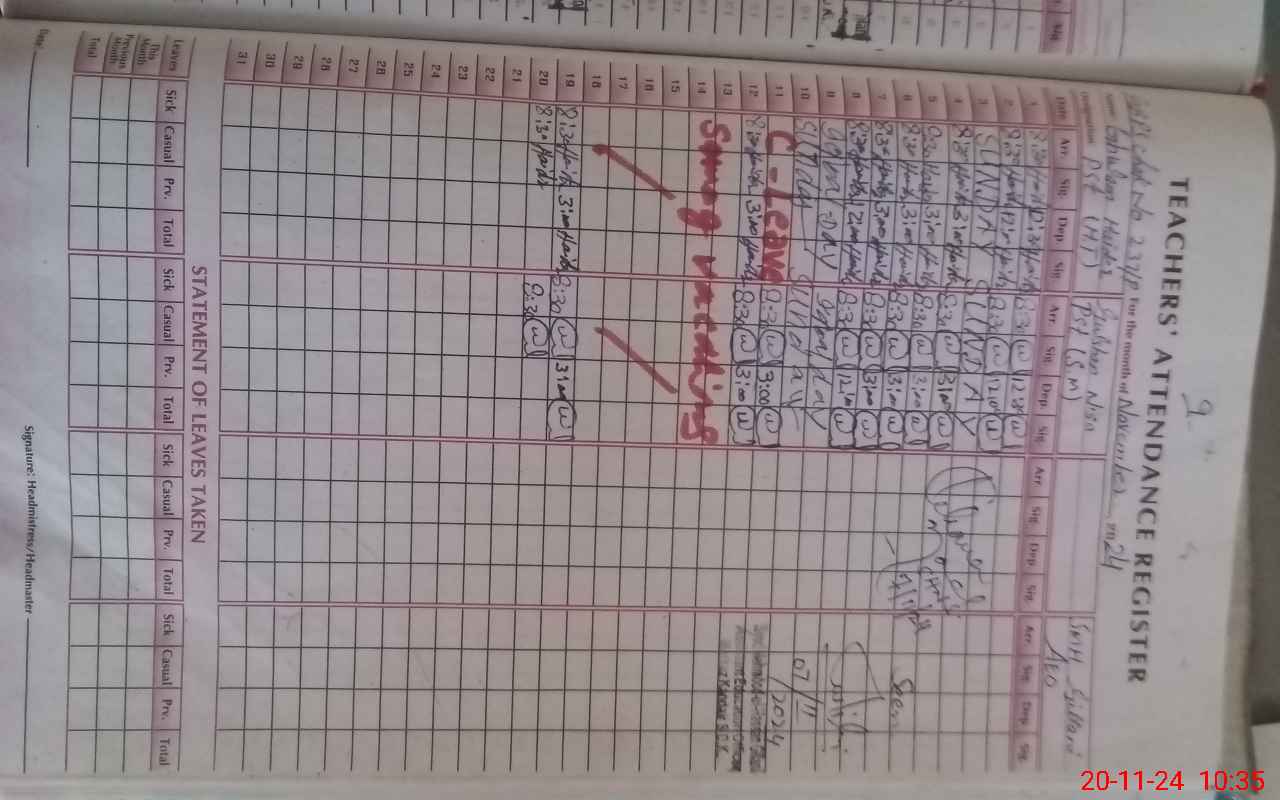 | Attendance Register | Head Teacher | MEA with School | Visit Proof |