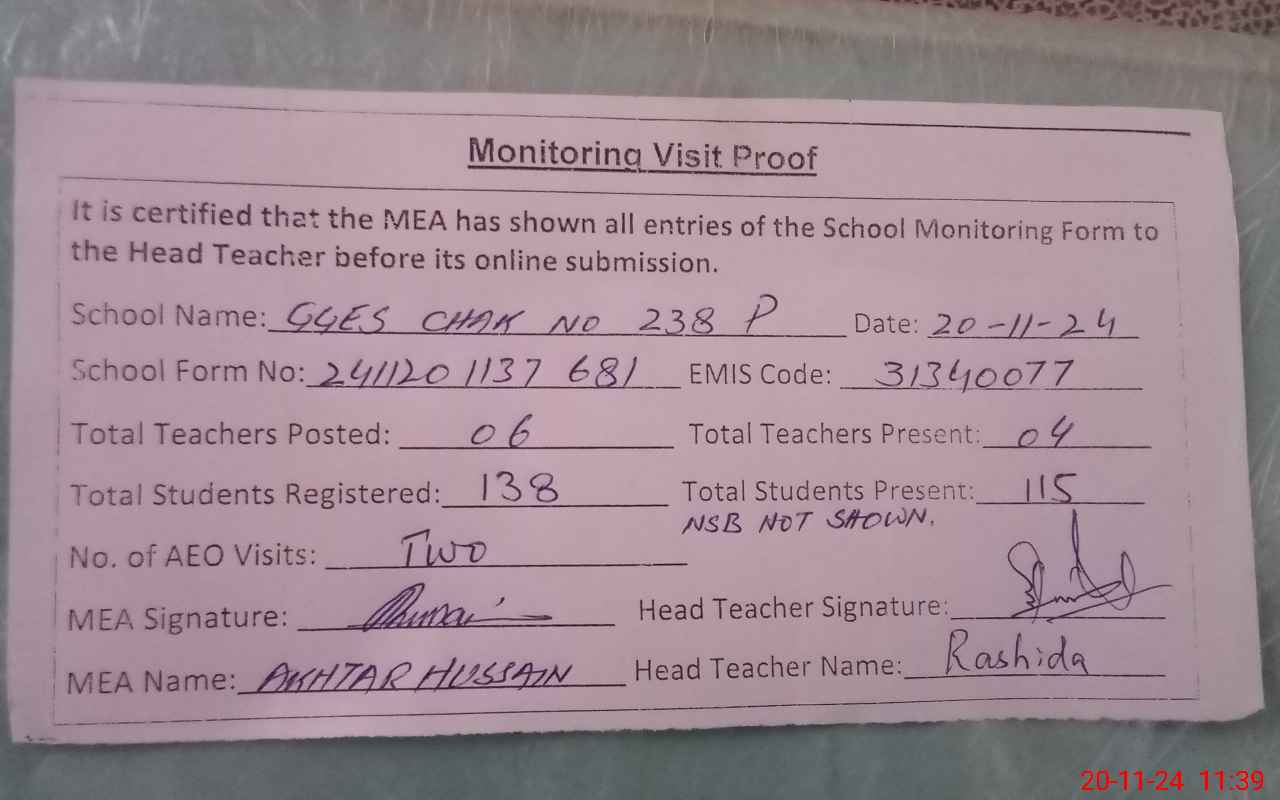 | EMIS Code: 31340077 | Name of School: GGES CHAK 238/P | |||