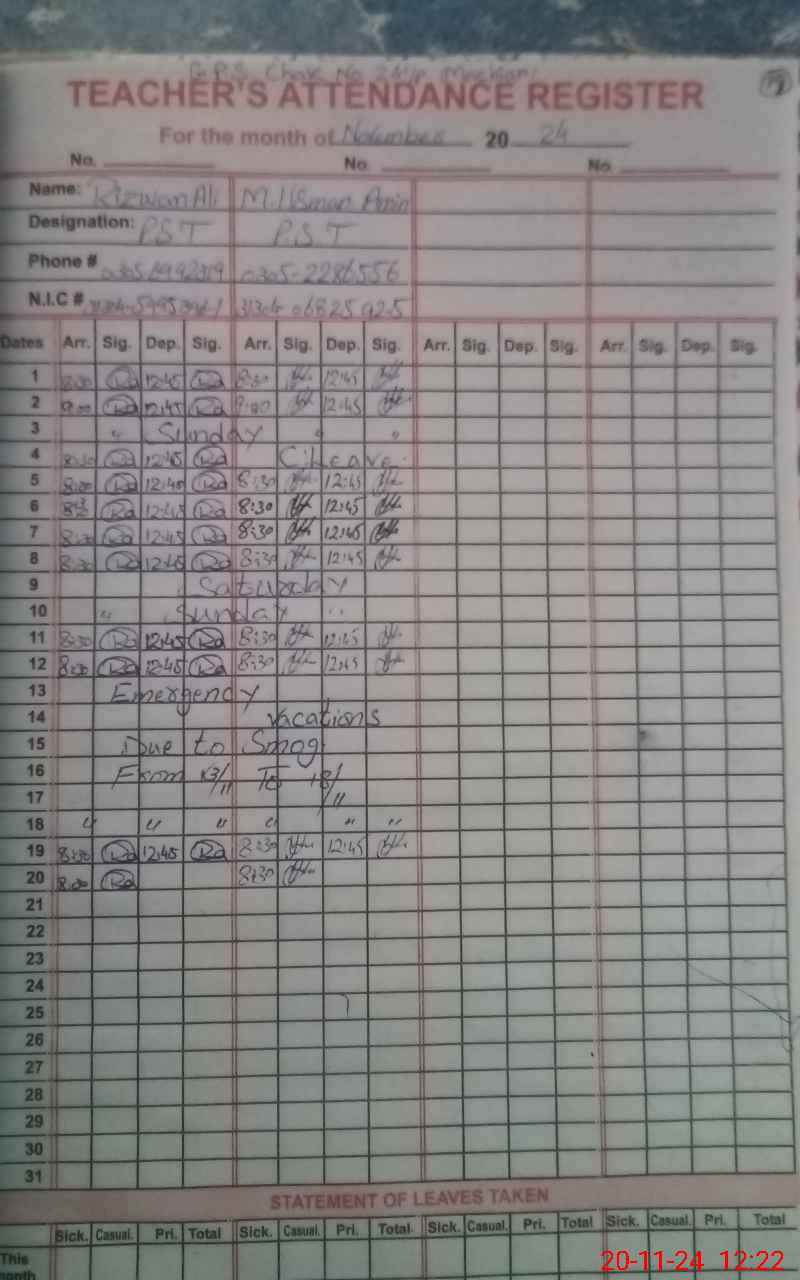 | Name: Ri**** Al**** Designation: (School Headmaster's/Headmistress's) PST Phone/Cell Number: 03**** |