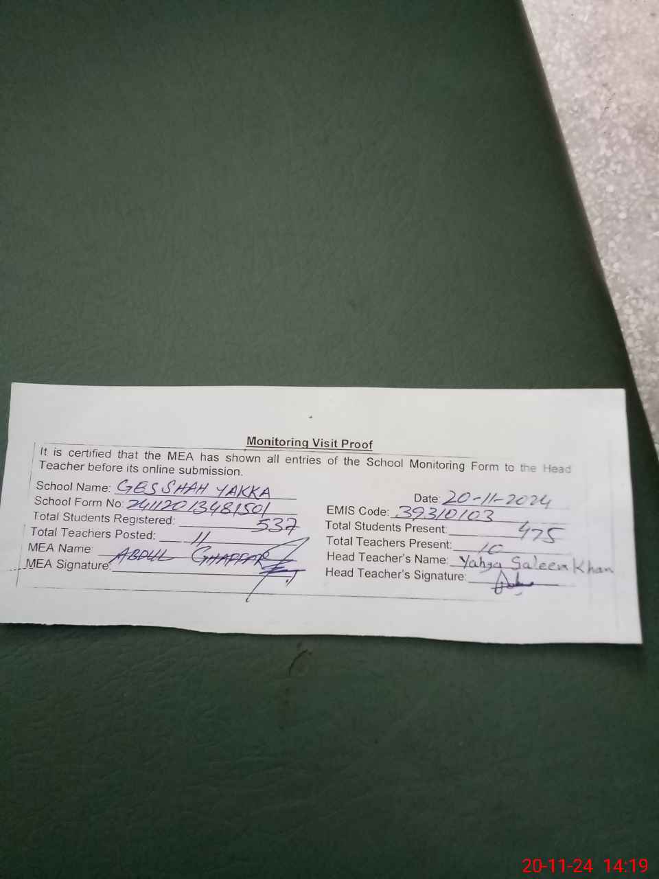 | EMIS Code: 39310103 | Name of School: GES SHAH YAKKA | |||