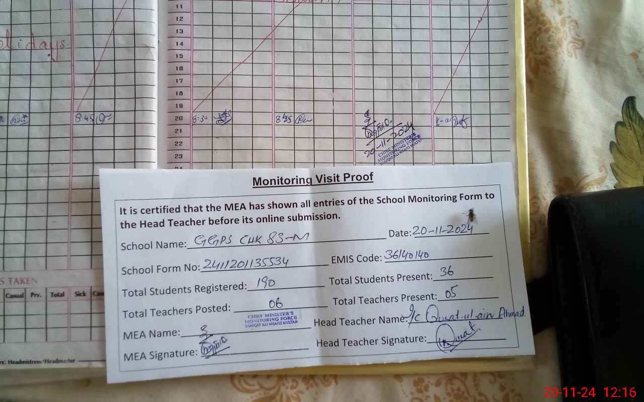 | Attendance Register | Head Teacher | MEA with School | Visit Proof |