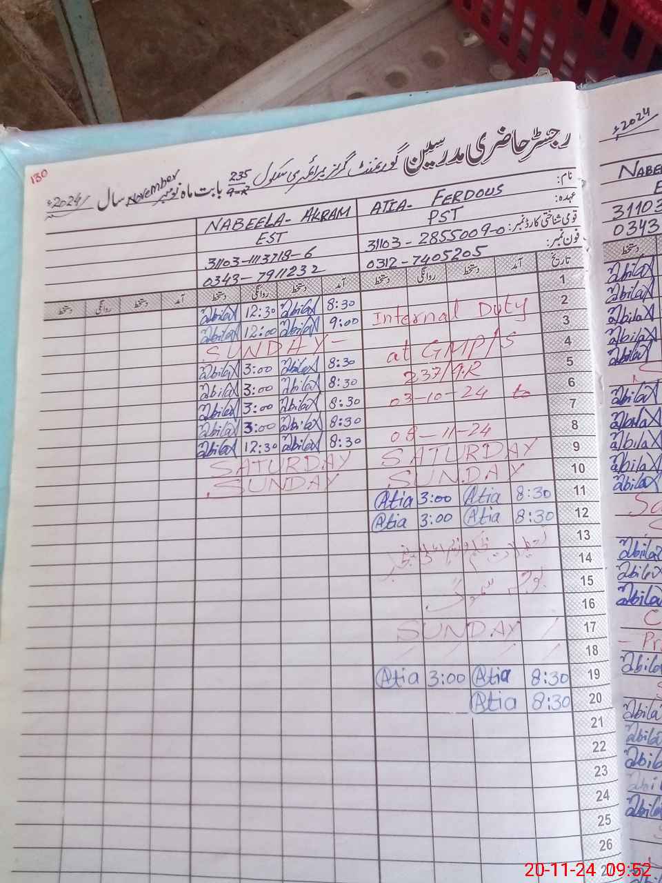 | CNIC | Full Name | Designation | R/C | Absence During Last Calender Month |