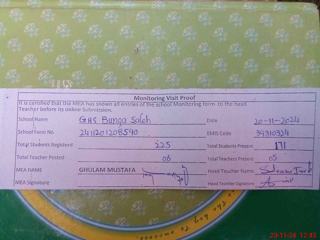 | EMIS Code: 39310324 | Name of School: GHS BUNGA SALEH | |||