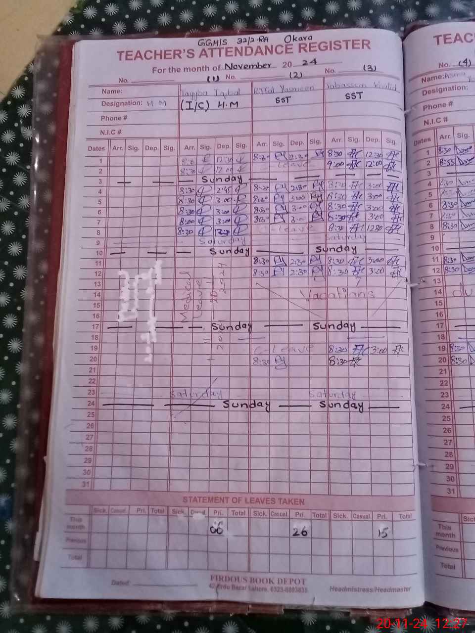 | 35**** | Na**** Ta**** | PST | Regular | 2 | 0 | 0 | 0 | 0 | 0 | 0 | 0 | 2 | Casual |