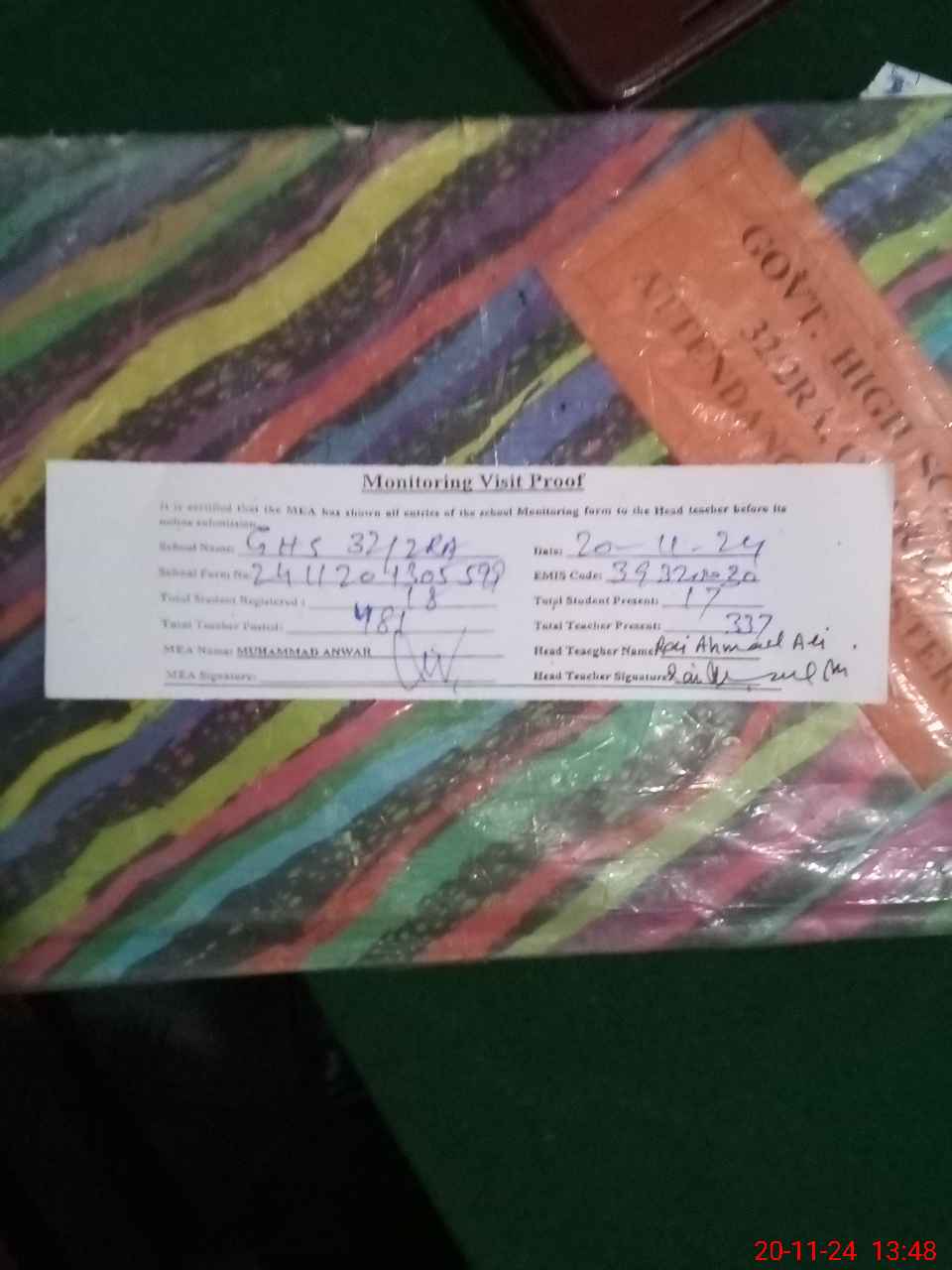 | Attendance Register | Head Teacher | MEA with School | Visit Proof |