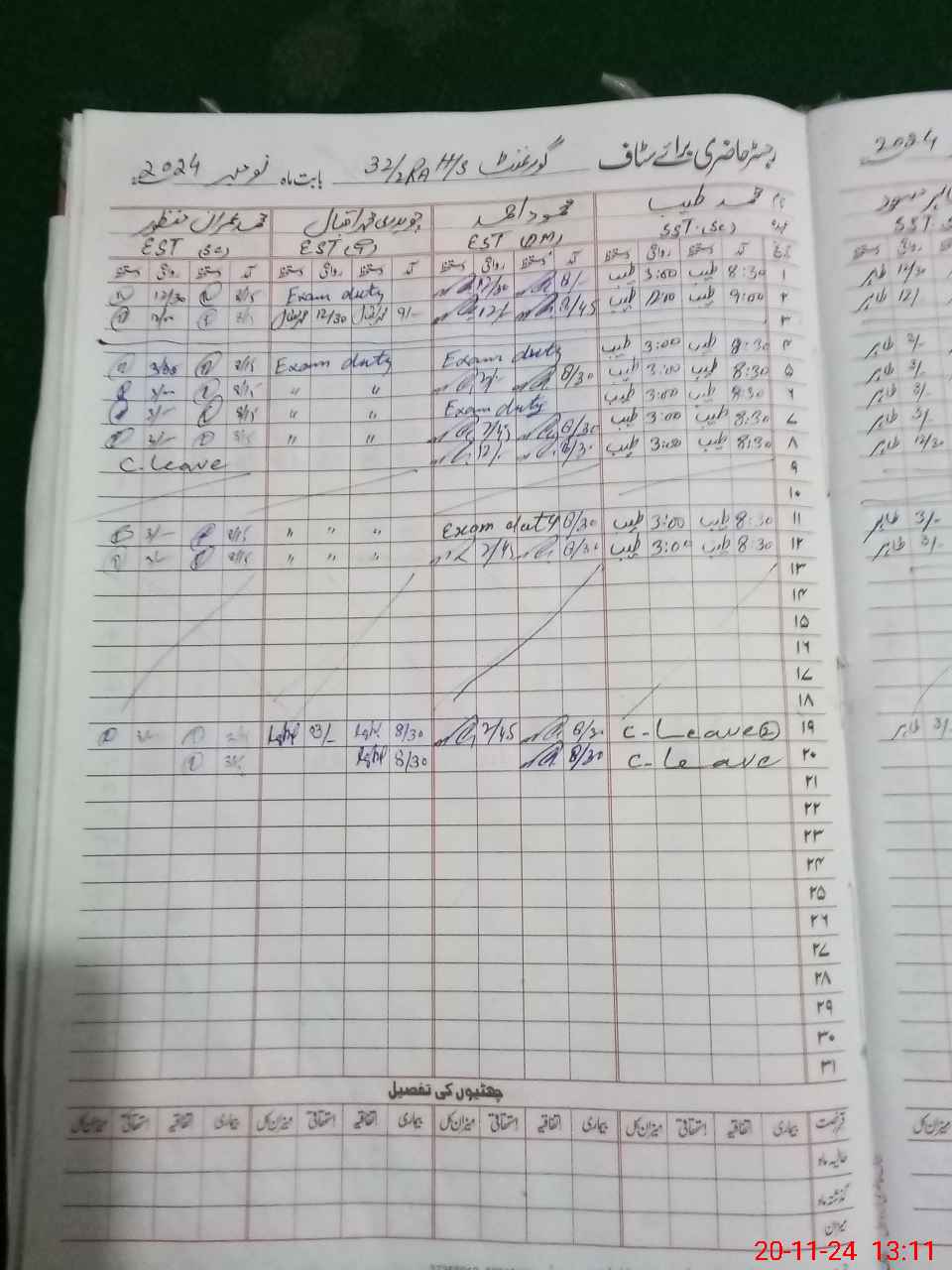 | Leave | Duty | Absent | Maternity | Medical | Ex- Pak |