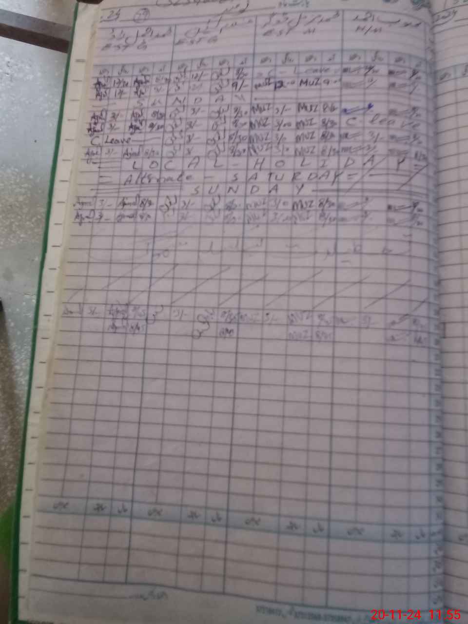 | Leave | Duty | Absent | Maternity | Medical | Ex- Pak |