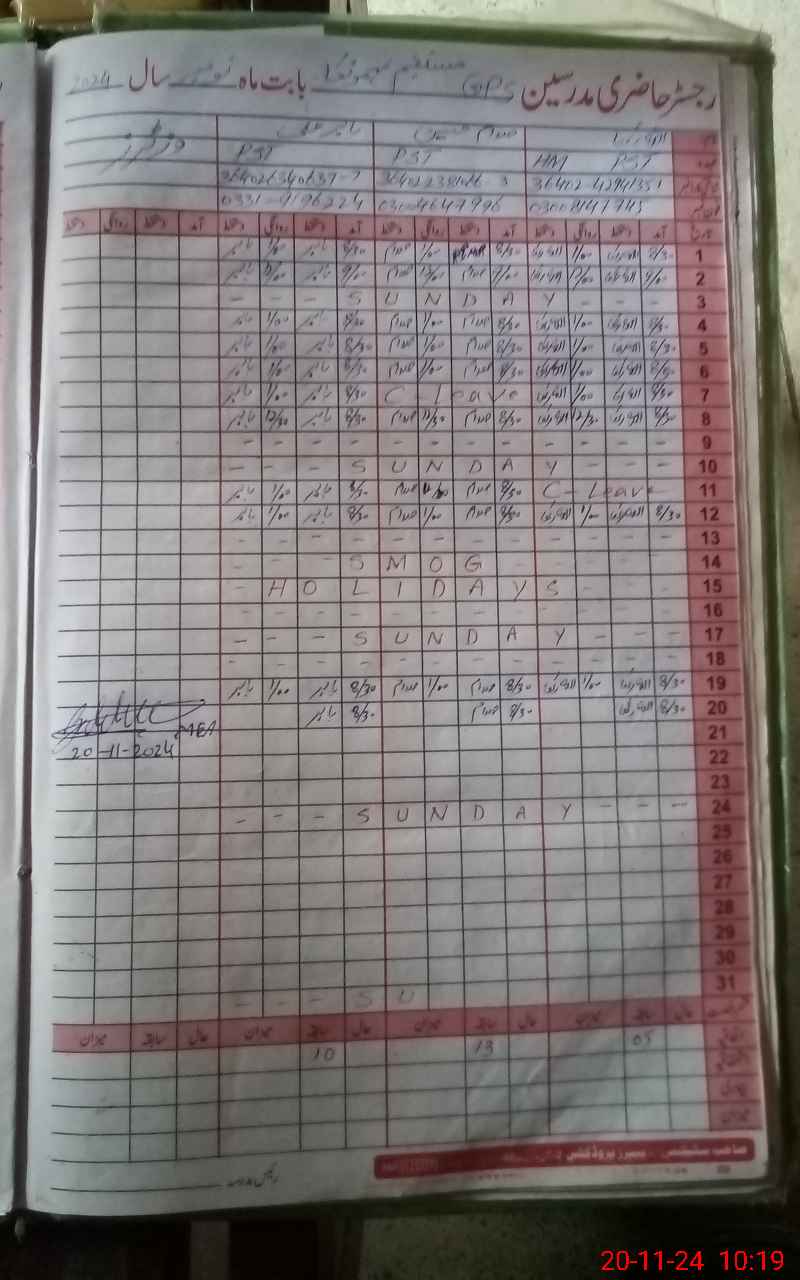 | Name: AL**** RA**** Designation: (School Headmaster's/Headmistress's) PST Phone/Cell Number: 03**** |
