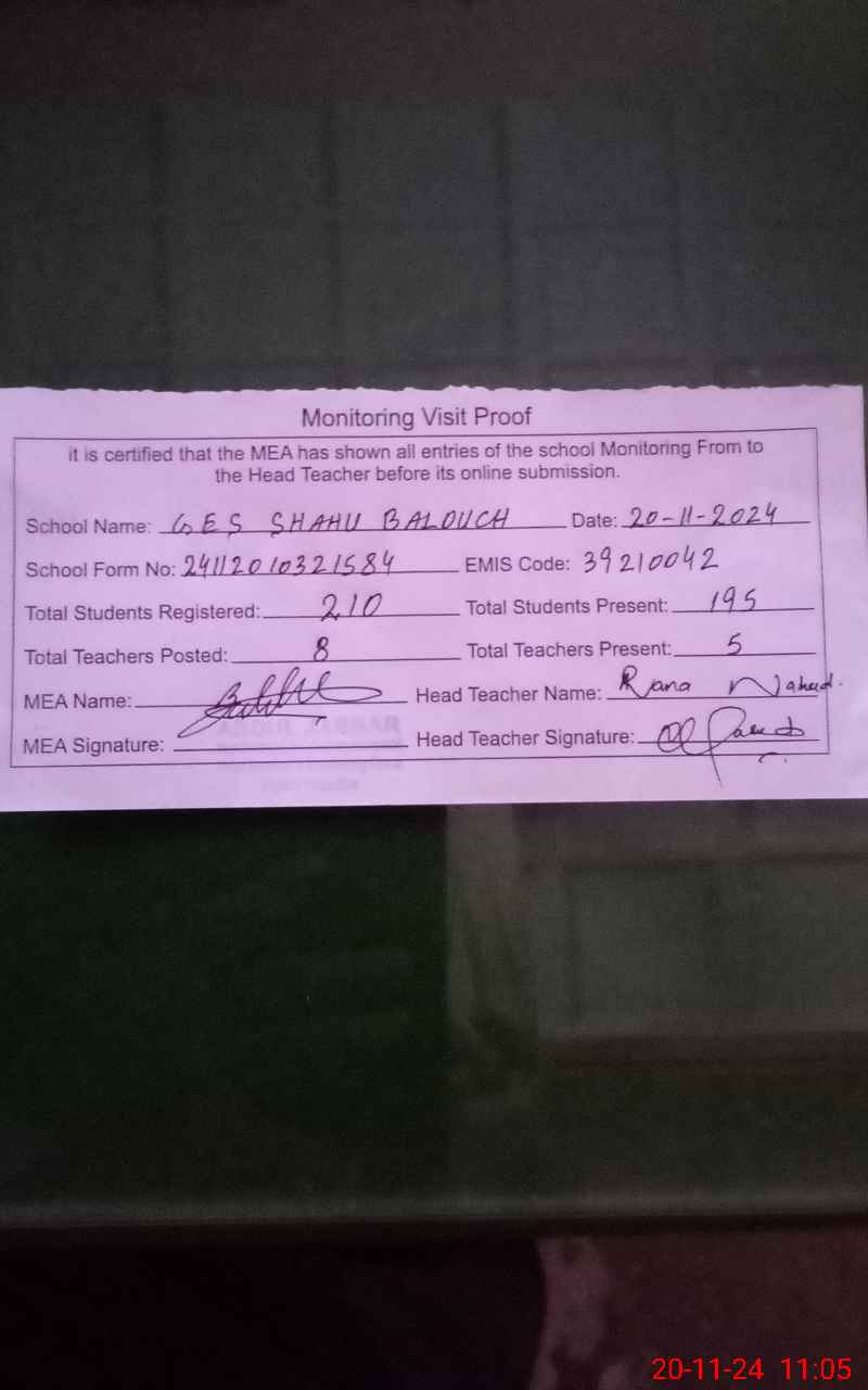 | EMIS Code: 39210042 | Name of School: GES SHAHU BALOUCH PO PAKPATTAN | |||
